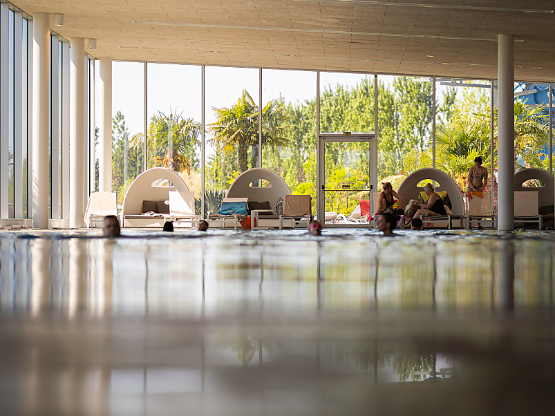 - 1800 m² vodní plochy s venkovními a vnitřními termálními bazény, se dvěma tobogány ode dne příjezdu!