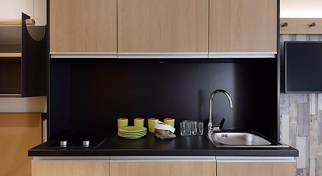 Gemütliche Zimmer und dazu eine Kochecke mit zwei Herdplatten und Kühlschrank. Ferner Memory Foam-Betten (180x210), Wohnecke mit Sofa und Tisch, LCD-TV mit Satellitenkanälen, Internet per Hochgeschwindigkeits-Wi-Fi, Tresor, Fenstertür mit direktem Zugang zum Parkplatz, King-Size Dusche, Fön, Handtücher aus reiner Baumwolle und Badeutensilien.